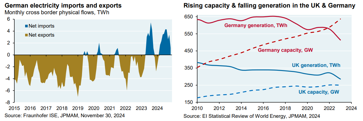 The report also touched on Germany’s coming Energieweimar. Despite Deutschland’s heavy investments in wind and solar, the country has become a net importer of electricity. Long story short, installed power capacity continues to rise but actual generation is falling. The same story is unfolding in the United Kingdom.