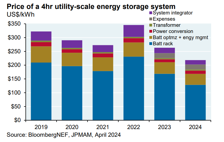 Battery storage prices are falling again after a price spike in 2022. According to Energy Storage News, the main drivers of the fall are cell manufacturing overcapacity, economies of scale, low metal and component prices, a slowdown in the EV market, and increased adoption of lithium iron phosphate (LFP) batteries, which are cheaper than nickel manganese cobalt (NMC) batteries.