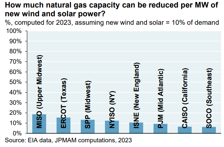 We understand we are preaching to the choir here, but it is nice to see the JPMC report acknowledge just how ineffective wind and solar are at reducing our dependency on dispatchable generators.