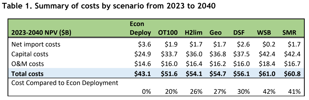 The lowest-cost deep decarbonization scenario in the CEO report was one with a substantial buildout of wind, solar, battery storage, while retaining natural gas on the system for reliability, which presents issues for nuclear.