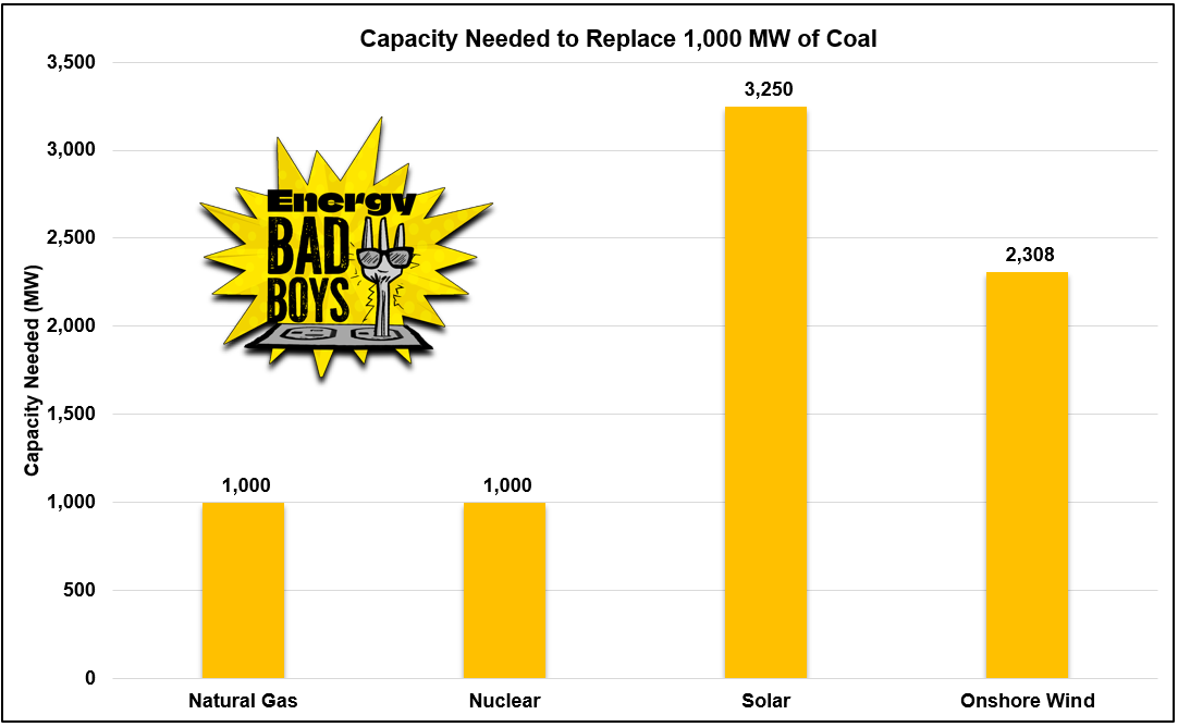 Even if you install 3500 MW of wind and solar it won’t replace the 1000MW coal plant without an unaffordable array of batteries. When you consider efficiencies (70% for grid scale batteries) you’d need at least 5000 MW. This of course doesn’t include long term storage, because it hasn’t been invented yet, so until it is you need to keep the coal plant on standby.