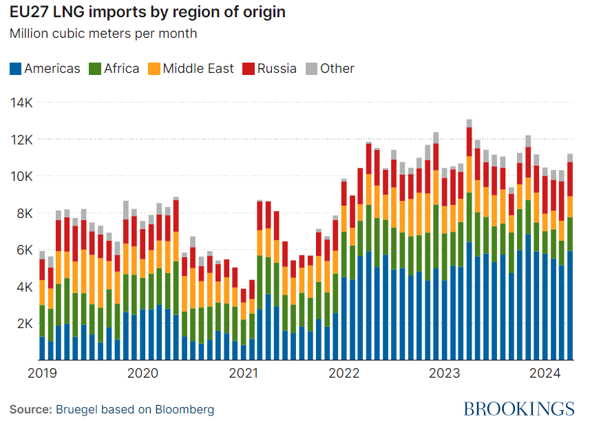As a result, the good old US of A is supplying the European Union with much of its gas, as the Americas account for about half of EU gas imports through much of this year.