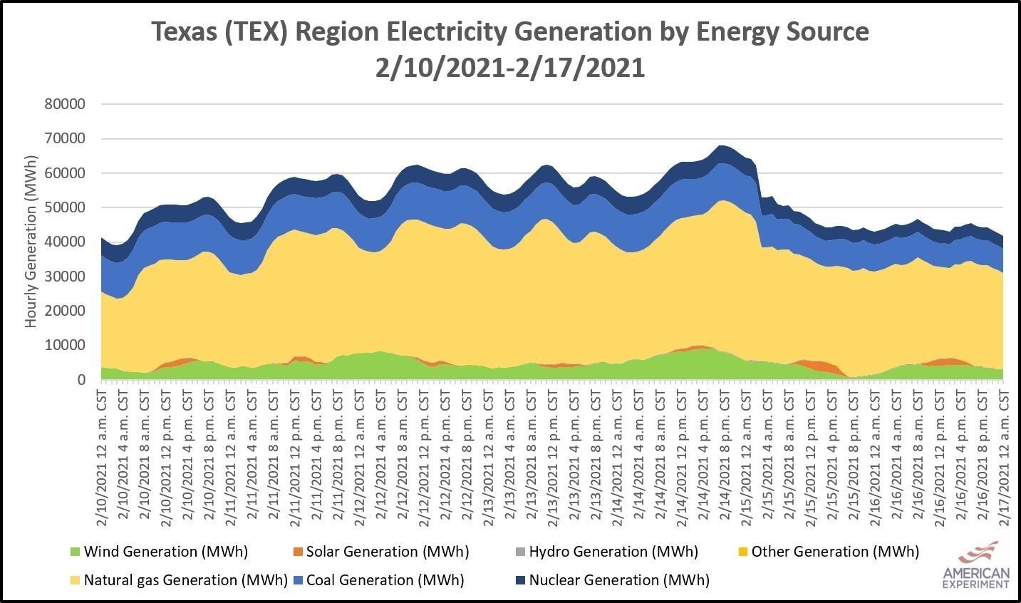 The same cannot be said of wind and solar facilities unaffected by freezing temperatures, which only produced between 1.5 and 14.7 percent of total generation during the energy crisis. Renewable energy sources were by far the least reliable during the outages.