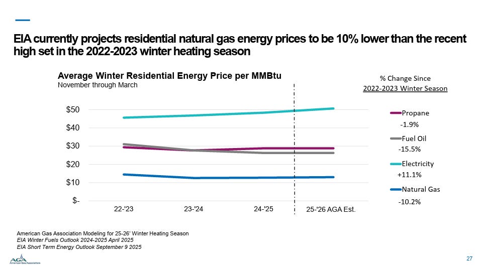 In September of 2025, the American Gas Association published its 2025-2026 Winter Heating Outlook. Here are six slides from their analysis that we thought offered some of the most interesting insights.