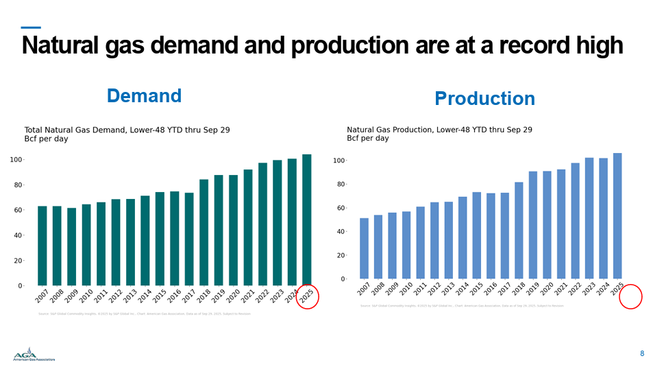 Natural gas demand and production continue to surge. According to AGA’s figures, the demand for natural gas has increased by approximately 66 percent since 2007, and production has essentially doubled in the same time frame.