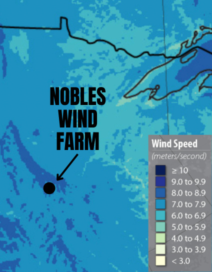 Nobles is located in a very windy part of the state, which prompted the construction of dozens of wind facilities nearby to meet Minnesota’s renewable energy mandate and to maximize the generation of electricity and federal tax credits.