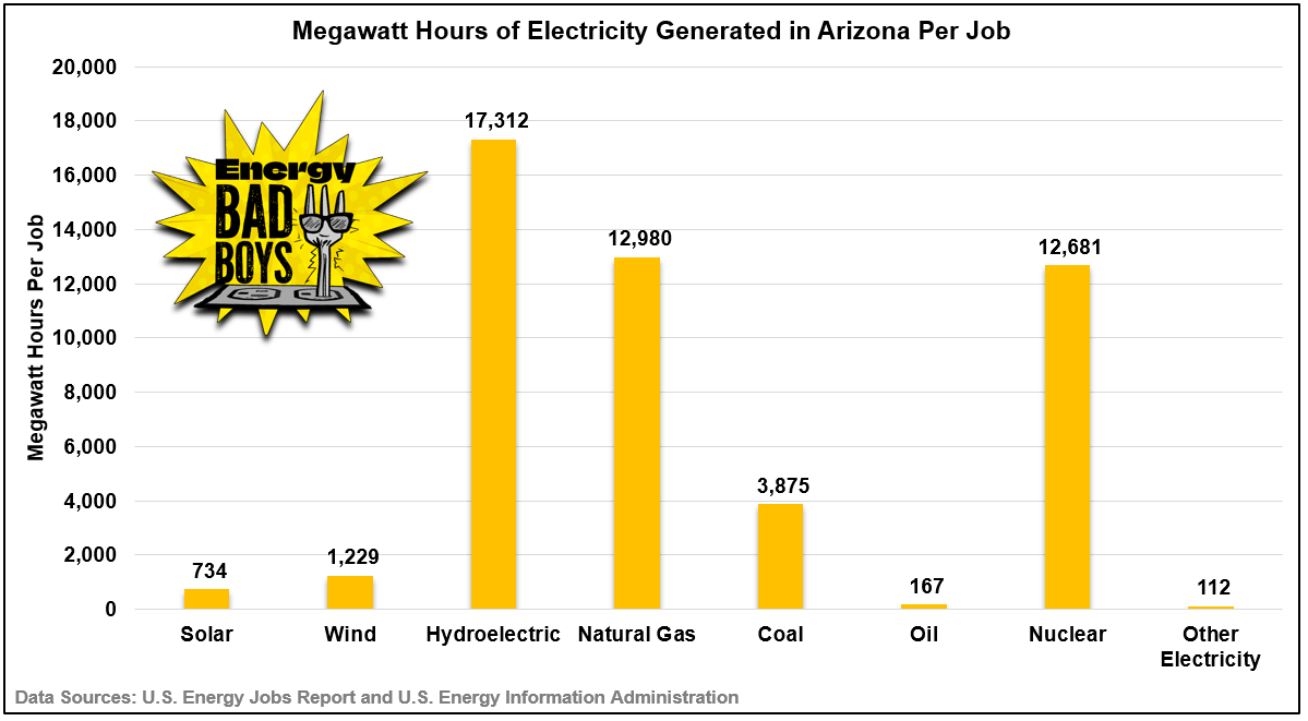 (check out his Substack!) often notes, the purpose of the energy industry is to create energy, not create jobs.According to the U.S. Energy and Jobs Report for Arizona, the electric power generation sector employed 23,898 workers in The Grand Canyon State in 2022. Using the employment data in the report and generation data from the U.S. Energy Information Administration (EIA), we can see that solar currently generates less electricity per job than hydroelectric power, natural gas, nuclear, coal, and wind.
