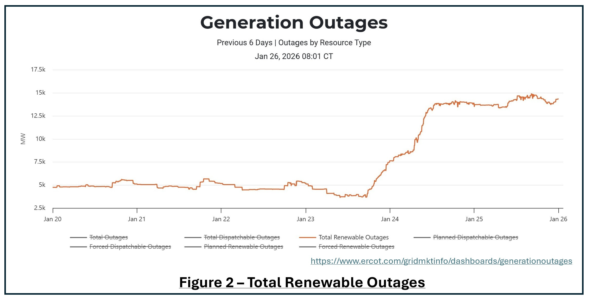 Reuters reported outages of 21,000 MW on the 26th, a far cry from the 57,000 MW that were unavailable during Winter Storm Elliot in 2022.
