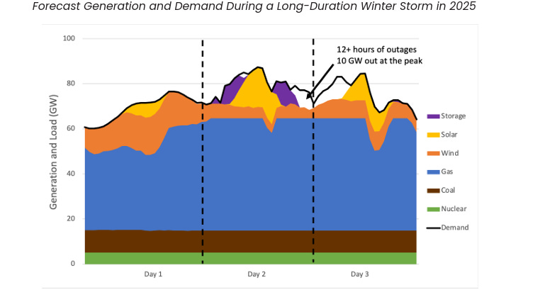 Texas has less gas, coal, and nuclear capacity than it did 10 years ago, while peak winter demand has grown by over 30 percent. In the 5 years since Winter Storm Uri, the ERCOT region has added 31 GW of solar, 9 GW of wind, and only 3 GW of gas. If this trend continues, Texas will soon be in the dark even in minor storms like Fern, much less a storm like Uri.