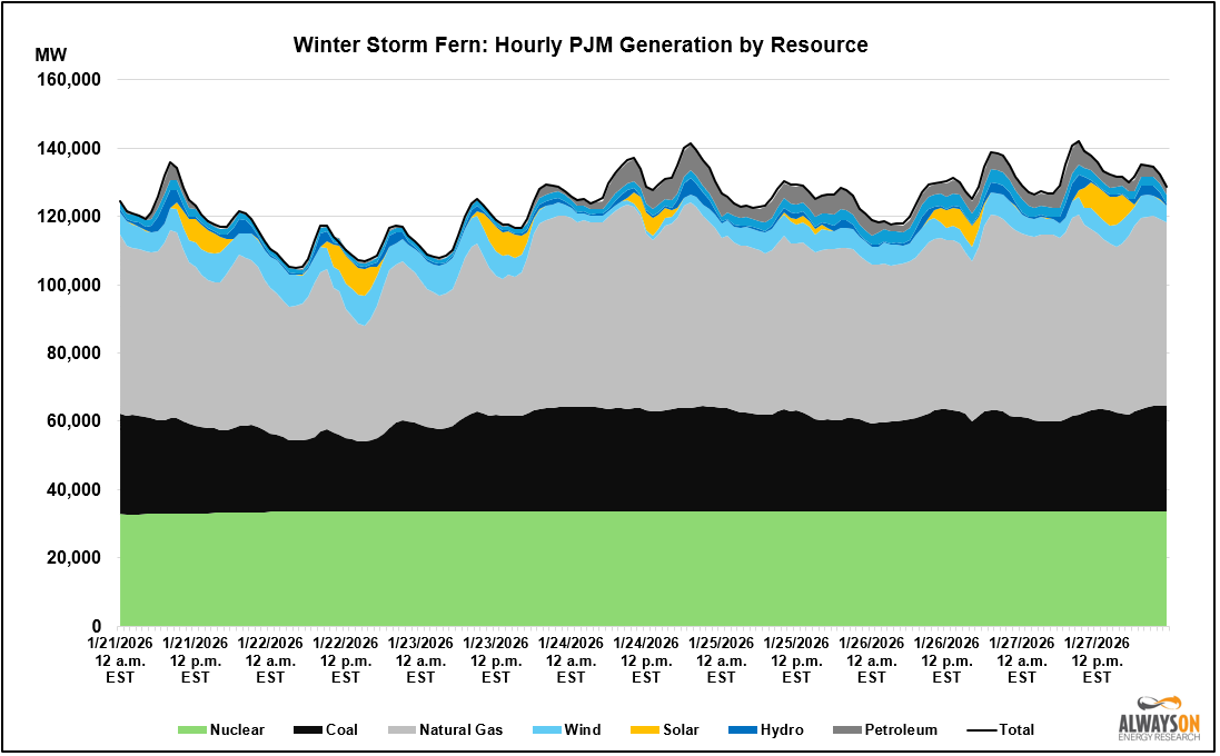 PJM also burned some oil to keep the lights on, but overall, things were pretty tame because demand only hit a little over 140,000 MW, well below the 147,200 MW the grid operator had originally predicted, which would have shattered the record set in January of 2025.