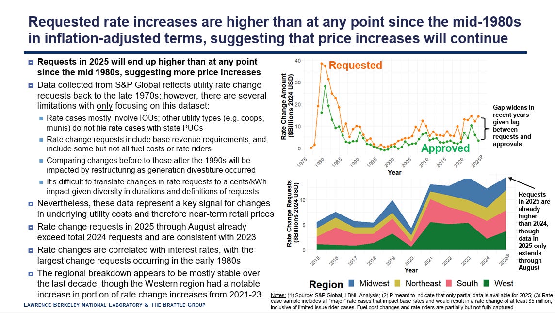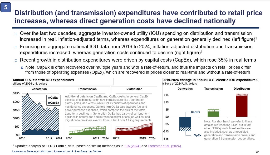 In mid-October 2025, Lawrence Berkeley National Labs (LBNL) and the Brattle Group released a study called “Factors Influencing Recent Trends in Retail Electricity Prices in the United States.”