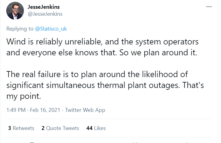If resource planners didn’t rely on wind and solar for reliability, arguments such as Jesse Jenkins’ would be more accurate. However, that isn’t the case.